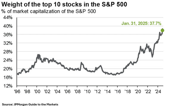 Equity investors have enjoyed a remarkable run over the past two years. The S&P 500 delivered impressive results with total returns of 26% in 2023 and 25% in 2024, marking only the seventh time in history with consecutive years of >20% returns. The S&P 500's stellar performance this decade, with a 13% annualized return, has significantly boosted equity portfolios. However, due to the outsized returns of the largest companies, the composition of many portfolios has significantly changed.
